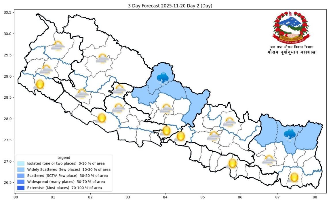 कोशी-गण्डकीका पहाडी-हिमाली क्षेत्रमा आंशिक बदली अन्य भूभागमा मौसम सामान्य